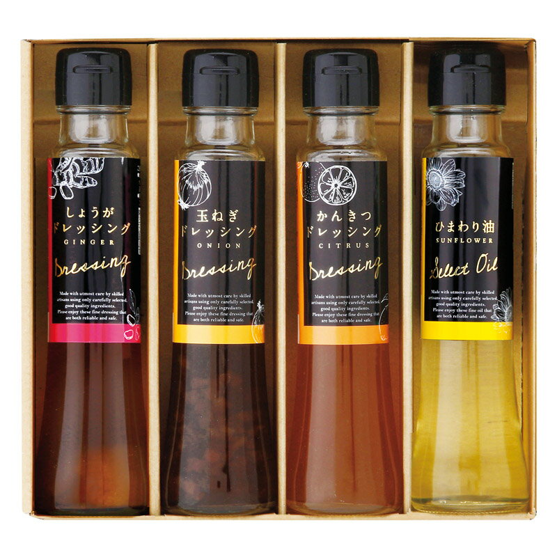 【商品説明】野菜がたっぷり食べられる、見た目鮮やか味いろいろ、美味しいドレッシングの詰合せ。 【内容】しょうがドレッシング(100ml)・玉ねぎドレッシング(100ml)・かんきつドレッシング(100ml)・ひまわり油(90g)×各1 【型番】DS-4Y 【箱サイズ】化粧箱:約185×203×52mm(入) 【箱入重量】約1.1kg 【賞味期限】製造日より365日 【アレルギー】小麦 オクルヤ 小豆島うまれ 彩りドレッシングセット 3,242 ~