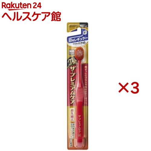 お店TOP>日用品>オーラルケア>歯ブラシ(ハブラシ)>歯ブラシ やわらかめ>ザ・プレミアムケアハブラシ・8列レギュラー やわらかめ (3セット)【ザ・プレミアムケアハブラシ・8列レギュラー やわらかめの商品詳細】●幅広ヘッドハブラシ「ザ・プレミアムケアハブラシ」●薄型ヘッドで磨き残しの多い奥歯まで毛先が届く●メーカー従来品より毛束を密集させたぎっしりブラシ●濃密幅広ヘッドが、なめらかな磨き心地で歯と歯ぐきをやさしく包み込んでしっかり磨きあげる●歯ぐきにやさしいソフト毛、歯面をしっかり磨くミディアム毛、歯の凹凸の汚れを落とすハード毛の3種類の毛のかたさ●毛先φ0.01mmの超先細毛が磨きにくい歯周ポケットに入り込んで歯垢をかき出し、フラット毛が歯面の歯垢をしっかり落とす●歯科医が薦める歯周ポケット磨きに適した超先細毛●幅広ヘッドでいつものブラッシングで簡単に効率よく、歯垢(プラーク)を除去。 ●更なる磨き心地へ●歯を広くカバーする8列レギュラーヘッド※カラーは選べません。 【規格概要】・毛のかたさ:やわらかめ・インフォメーションタグ:81・毛の材質:飽和ポリエステル樹脂・柄の材質 本体部:ポリプロピレン ラバー部:熱可塑性エラストマー・耐熱温度:80度・日本製・個装サイズ 38*230*19mm 22g【原産国】日本【ブランド】ザ・プレミアムケア【発売元、製造元、輸入元又は販売元】エビス※説明文は単品の内容です。 リニューアルに伴い、パッケージ・内容等予告なく変更する場合がございます。 予めご了承ください。 ・単品JAN:4901221362105エビス639-1191 奈良県大和郡山市西町321番地0120-37-0791広告文責:楽天グループ株式会社電話:050-5577-5042[歯ブラシ・電動歯ブラシ/ブランド:ザ・プレミアムケア/] ザ・プレミアムケアハブラシ・8列レギュラー やわらかめ(3セット)【ザ・プレミアムケア】 1,445 ~