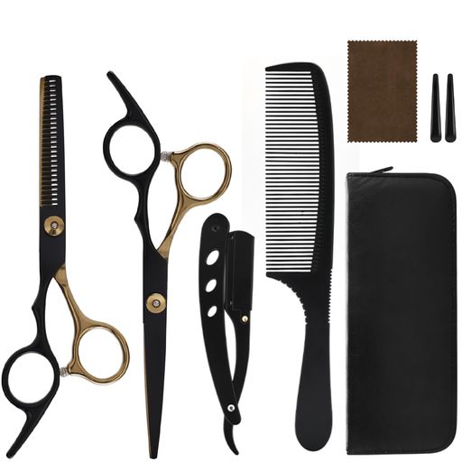 ステンレス製髪切りハサミ理容道具セット低すき率すきばさみヘアスタイリングコームストレートエッジカミソリハンドル付きヘアブラシ9点セットサロンはさみ男性女性ペット用 4,369 ~