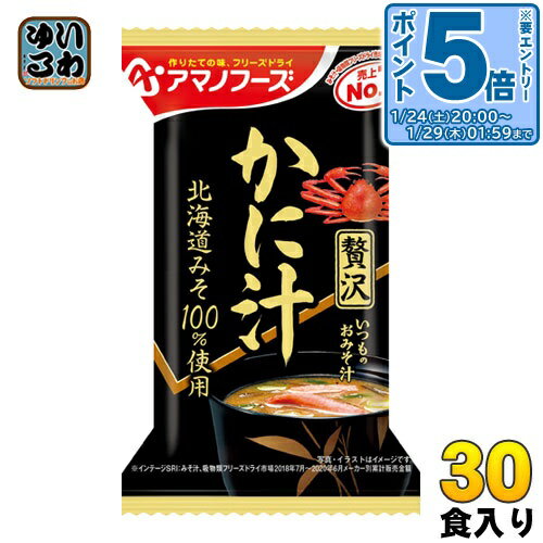 > こちらの商品の単品・まとめ買いはこちら【一個あたり 183円(税込)】【賞味期間】製造後360日【商品説明】かにの身を楽しめる一杯です。 癖のない北海道みそときざみ昆布が、かにの旨味を引き立たせています。 【名称および品名】即席みそ汁(乾燥タイプ)【エネルギー】1食あたり31kcal【栄養成分】たんぱく質 2.5g、脂質 0.68g、炭水化物 3.7g、食塩相当量 1.7g【原材料】米みそ(国内製造)、かに加工品(かに、食塩)、ゆでがに、ねぎ、還元水あめ、風味調味料、こんぶ、でん粉・デキストリン混合物、こんぶ粉末、おきあみエキス調味料、酵母エキスパウダー/調味料(アミノ酸等)、酸化防止剤(ビタミンE)、酸味料、(一部にかに・さば・大豆・魚醤(魚介類)を含む)【保存方法】常温【製造者、販売者、又は輸入者】天野実業株式会社※北海道・沖縄県・離島(一部)へのお届けは決済時に送料無料となっていても追加送料が必要です。 (コカ・コーラ直送を除く)北海道1個口 715円(税込)、沖縄県1個口 2420円(税込)※離島・一部地域は追加送料がかかる場合があります。 追加送料の詳細は注文確定メールにてご案内いたします。 ※本商品はご注文タイミングやご注文内容によっては、購入履歴からのご注文キャンセル、修正を受け付けることができない場合がございます。 変更・修正ができない場合は、メール、お電話にてご連絡をお願い致します。 ■ 法人・団体のお客様 大口購入のご相談承ります ■法人のお客様、各種団体のお客様で、まとまった数量でのご購入をご検討の際は、お気軽にご相談ください。 お客様のご要望に合わせて柔軟に対応させていただきます。 まずはお気軽にお問い合わせフォームよりご連絡ください。 送料無料 FD インスタント 即席 味噌汁 4971334209727 〔エントリーでポイント5倍!〕 アマノフーズ フリーズドライ いつものおみそ汁贅沢 かに汁 30食 (10食入×3 まとめ買い) 〔FD インスタント 即席 味噌汁〕 5,475 ~