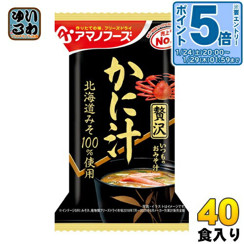 > こちらの商品の単品・まとめ買いはこちら【一個あたり 206円(税込)】【賞味期間】製造後360日【商品説明】かにの身を楽しめる一杯です。 癖のない北海道みそときざみ昆布が、かにの旨味を引き立たせています。 【名称および品名】即席みそ汁(乾燥タイプ)【エネルギー】1食あたり31kcal【栄養成分】たんぱく質 2.5g、脂質 0.68g、炭水化物 3.7g、食塩相当量 1.7g【原材料】米みそ(国内製造)、かに加工品(かに、食塩)、ゆでがに、ねぎ、還元水あめ、風味調味料、こんぶ、でん粉・デキストリン混合物、こんぶ粉末、おきあみエキス調味料、酵母エキスパウダー/調味料(アミノ酸等)、酸化防止剤(ビタミンE)、酸味料、(一部にかに・さば・大豆・魚醤(魚介類)を含む)【保存方法】常温【製造者、販売者、又は輸入者】天野実業株式会社※北海道・沖縄県・離島(一部)へのお届けは決済時に送料無料となっていても追加送料が必要です。 (コカ・コーラ直送を除く)北海道1個口 715円(税込)、沖縄県1個口 2420円(税込)※離島・一部地域は追加送料がかかる場合があります。 追加送料の詳細は注文確定メールにてご案内いたします。 ※本商品はご注文タイミングやご注文内容によっては、購入履歴からのご注文キャンセル、修正を受け付けることができない場合がございます。 変更・修正ができない場合は、メール、お電話にてご連絡をお願い致します。 ■ 法人・団体のお客様 大口購入のご相談承ります ■法人のお客様、各種団体のお客様で、まとまった数量でのご購入をご検討の際は、お気軽にご相談ください。 お客様のご要望に合わせて柔軟に対応させていただきます。 まずはお気軽にお問い合わせフォームよりご連絡ください。 送料無料 FD インスタント 即席 味噌汁 4971334209727 〔エントリーでポイント5倍!〕 アマノフーズ フリーズドライ いつものおみそ汁贅沢 かに汁 20食 (10食入×2 まとめ買い) 〔FD インスタント 即席 味噌汁〕 4,104 ~