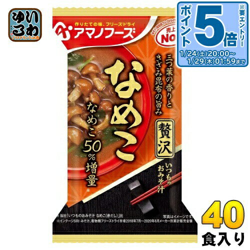 > こちらの商品の単品・まとめ買いはこちら【一個あたり 135円(税込)】【賞味期間】製造後360日【商品説明】三つ葉の香りときざみ昆布の旨み広がるなめこのおみそ汁です。 たっぷり入ったなめこのつるっとした食感を楽しめます。 【名称および品名】即席みそ汁(乾燥タイプ)【エネルギー】1食(9g)あたり31kcal【栄養成分】たんぱく質 2g、脂質 0.67g、炭水化物 4.2g、ナ食塩相当量 1.7g【原材料】なめこ(国産)、調合みそ、豆みそ、みつば、風味調味料、しょうゆ、でん粉・デキストリン混合物、こんぶ、かにエキス、こんぶ粉末、かつお節粉末、酵母エキスパウダー/調味料(アミノ酸等)、カラメル色素、酸化防止剤(ビタミンE)、酸味料、(一部にかに・小麦・乳成分・さば・大豆・魚醤(魚介類)を含む)【保存方法】常温【製造者、販売者、又は輸入者】アサヒグループ食品株式会社【アレルギー特定原材料】乳、小麦、かに、さば、大豆、魚介類※北海道・沖縄県・離島(一部)へのお届けは決済時に送料無料となっていても追加送料が必要です。 (コカ・コーラ直送を除く)北海道1個口 715円(税込)、沖縄県1個口 2420円(税込)※離島・一部地域は追加送料がかかる場合があります。 追加送料の詳細は注文確定メールにてご案内いたします。 ※本商品はご注文タイミングやご注文内容によっては、購入履歴からのご注文キャンセル、修正を受け付けることができない場合がございます。 変更・修正ができない場合は、メール、お電話にてご連絡をお願い致します。 ■ 法人・団体のお客様 大口購入のご相談承ります ■法人のお客様、各種団体のお客様で、まとまった数量でのご購入をご検討の際は、お気軽にご相談ください。 お客様のご要望に合わせて柔軟に対応させていただきます。 まずはお気軽にお問い合わせフォームよりご連絡ください。 送料無料 お味噌汁 FD インスタント 即席 味噌汁 手軽 簡単 便利 即席 汁もの 楽らく 美味しい インスタント味噌汁 即席味噌汁 乾燥味噌汁 おみそ汁 みそしる おみそしる 凍結乾燥 お湯 注ぐだけ 一人暮らし いつものお味噌汁 いつものみそ汁 いつもの味噌汁 天野実業 天野実業株式会社 ぜいたく ナメコ きのこ 茸 4971334209697 〔エントリーでポイント5倍!〕 アマノフーズ フリーズドライ いつものおみそ汁 贅沢 なめこ 40食 (10食入×4 まとめ買い) お味噌汁 FD インスタント 即席 味噌汁 5,400 ~