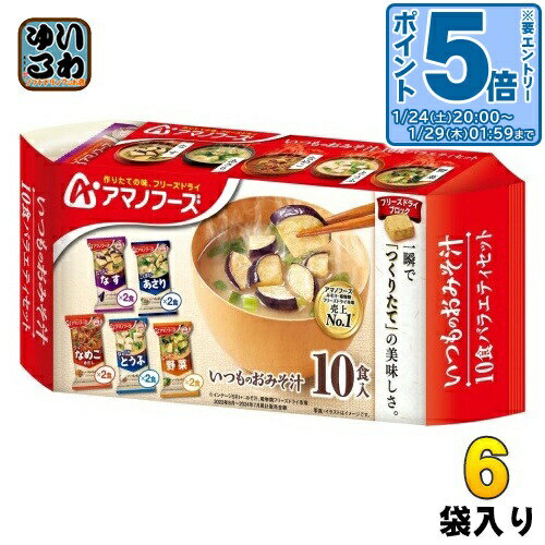 【一個あたり 1059円(税込)】【賞味期間】製造後1年【商品説明】一瞬で作りたてのようなおいしさ、まるで手作りのようなおいしさを手軽に味わえる「いつものおみそ汁」シリーズの人気商品を詰め合わせたバラエティセットです。 いつものおみそ汁(なす・あさり・野菜・なめこ(赤だし)・とうふ)5種×各2食【内容量(1袋)】10食【名称および品名】簡便食【栄養成分】たんぱく質 1.8〜2.5g、脂質 0.45〜2.1g、炭水化物 3.2〜5.1g、食塩相当量 1.5〜1.7g【原材料】■いつものおみそ汁 なす揚げなす(外国製造)、米みそ、調合みそ、ねぎ、風味調味料、でん粉・デキストリン混合物、みりん、乾燥わかめ、オニオンエキスパウダー、酵母エキスパウダー、こんぶエキスパウダー/調味料(アミノ酸等)、酸化防止剤(ビタミンE)、酸味料、(一部にさば・大豆・鶏肉・魚醤(魚介類)を含む)■いつものおみそ汁 野菜米みそ(国内製造)、キャベツ、ほうれんそう、ねぎ、にんじん、風味調味料、酵母エキスパウダー、豚脂加工品、ブイヨン風調味料、乾燥わかめ、でん粉、はくさいエキスパウダー/調味料(アミノ酸等)、酸化防止剤(ビタミンE、ビタミンC)、酸味料、香辛料抽出物、(一部に小麦・乳成分・さば・大豆・豚肉・魚醤(魚介類)を含む)■いつものおみそ汁 なめこ(赤だし)なめこ(国産)、調合みそ、ねぎ、風味調味料、しょうゆ、でん粉・デキストリン混合物、酵母エキスパウダー/調味料(アミノ酸等)、カラメル色素、酸化防止剤(ビタミンE)、酸味料、(一部に小麦・乳成分・さば・大豆・魚醤(魚介類)を含む)■いつものおみそ汁 とうふ豆腐(国内製造)、米みそ、調合みそ、ねぎ、風味調味料、乾燥わかめ、でん粉・デキストリン混合物、食塩、かつお節粉末、こんぶ粉末、酵母エキスパウダー/調味料(アミノ酸等)、安定剤(加工デンプン)、凝固剤、酸化防止剤(ビタミンE)、酸味料、(一部にさば・大豆・魚醤(魚介類)を含む)(一部にさば・大豆・魚醤(魚介類)を含む)■いつものおみそ汁 あさり米みそ(国内製造)、ボイルあさり、ねぎ、あさりエキス調味料、あさりエキスパウダー、食塩、でん粉、乾燥わかめ、こんぶエキスパウダー、香辛料/調味料(アミノ酸等)、酸化防止剤(ビタミンE、ビタミンC)、(一部に大豆を含む)【保存方法】常温【製造者、販売者、又は輸入者】アサヒグループ食品株式会社【アレルギー特定原材料】乳、小麦、さば、大豆、鶏肉、豚肉※北海道・沖縄県・離島(一部)へのお届けは決済時に送料無料となっていても追加送料が必要です。 (コカ・コーラ直送を除く)北海道1個口 715円(税込)、沖縄県1個口 2420円(税込)※離島・一部地域は追加送料がかかる場合があります。 追加送料の詳細は注文確定メールにてご案内いたします。 ※本商品はご注文タイミングやご注文内容によっては、購入履歴からのご注文キャンセル、修正を受け付けることができない場合がございます。 変更・修正ができない場合は、メール、お電話にてご連絡をお願い致します。 ■ 法人・団体のお客様 大口購入のご相談承ります ■法人のお客様、各種団体のお客様で、まとまった数量でのご購入をご検討の際は、お気軽にご相談ください。 お客様のご要望に合わせて柔軟に対応させていただきます。 まずはお気軽にお問い合わせフォームよりご連絡ください。 送料無料 お味噌汁 FD インスタント 即席 個包装 味噌汁 手軽 簡単 便利 即席 汁もの 楽らく 美味しい インスタント味噌汁 即席味噌汁 乾燥味噌汁 おみそ汁 みそしる おみそしる 凍結乾燥 お湯 注ぐだけ 一人暮らし いつものお味噌汁 いつものみそ汁 いつもの味噌汁 天野実業 天野実業株式会社 茄子 なすび ナス 浅利 アサリ 貝 やさい ナメコ 滑子 きのこ キノコ 赤出汁 豆腐 詰め合わせ セット 4971334213434 〔エントリーでポイント5倍!〕 アマノフーズ フリーズドライ いつものおみそ汁 10食バラエティセット 6袋入 お味噌汁 FD インスタント 即席 味噌汁 個包装 6,350 ~