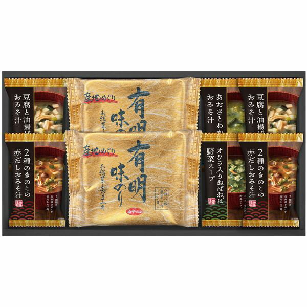 ●商品名/フリーズドライ & 有明海産 味のリ 味付け海苔 HAN-40●商品内容/有明味のリ(8切8枚)×4、2種のきのこの赤だしおみそ汁・とうふと油揚げのおみそ汁・あおさとわかめのおみそ汁・オクラ入ねばねば野菜スープ×各2●箱サイズ/約33×29×4.5cm●重量/約350g●賞味期限/製造より360日●アレルゲン/小麦・乳・えび・ごま・大豆・鶏肉●生産国/日本「凍結&乾燥」の技術で、作りたての美味しさをギュッと閉じ込めたフリーズドライ食品。栄養価も閉じ込めるとともに素材本来の旨味までお楽しみいただけます。有明味のリとのセットでごはんのお供をお楽しみください※メーカー都合により、デザイン・内容等が変更になる場合がございます。