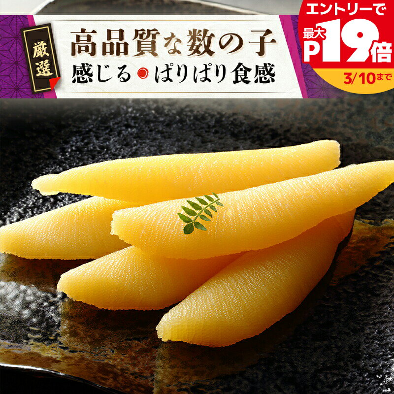 数の子をよりおいしく手軽に食べて頂きたく、一本造りのお刺身数の子を造りあげました。 従来の塩数の子と違い、薄皮取り及び塩抜きの手間がまったく必要ありませんので添付のたれでお召し上がりください。 ※リニューアルに伴い、パッケージ・内容等予告なく変更する場合がございます。 予めご了承ください。 ●規格内容量:240g(12本)保存方法:冷凍(-18℃以下)製造者名:ぎょれん総合食品●原材料【味付数の子】ニシンの卵(カナダ産)、調味液(しょうゆ、鰹節エキス、植物たん白加水分解物)【つけだれ】しょうゆ、米発酵調味料、植物たん白加水分解物、魚介エキス、還元水あめ【味付数の子】ソルビトール、調味料(アミノ酸等)、(一部に小麦・さば・大豆を含む)●成分エネルギー102kcal(112kcal)、たんぱく質15.4g(17.6g)、脂質4.0g(2.8g)、炭水化物0.1g(4.2g)、食塩相当量2.2g(1.5g)*()内は味付数の子のみ●原産国:カナダ●アレルギー物質小麦、さば、大豆○広告文責:株式会社アイリスプラザ(0120-108-824)○メーカー(製造):ぎょれん総合食品○区分:一般食品≪こちらの商品は当社指定の運送会社で配送致します≫配達時間指定は出来ません。 代金引換でのお支払は出来ません。 他商品との同時注文は出来ません。 ※当商品はお取り寄せ品の為、在庫の確認及び商品のお届けまでお時間を頂く場合がございます。 また、商品がメーカーにて完売となっていた場合、キャンセル又は注文内容の変更をお願いいたしております。 予めご了承くださいますようお願いいたします。 ■こちらの商品はアイリスプラザがセレクトしたオススメ商品です。 (検索用:数の子・刺身・魚卵・個包装・海鮮・珍味・ギフト・正月・冷凍・)最強翌日配送対象商品に関するご案内 最強翌日配送対象商品・対象地域に該当する場合は最強翌日配送マークがご注文カゴ近くに表示されます。 最強翌日配送可能なお支払方法は【クレジットカード、代金引換、全額ポイント支払い】のみとなります。 下記の場合は最強翌日配送対象外となります。 ・15点以上ご購入いただいた場合 ・時間指定がある場合 ・ご注文時備考欄にご記入がある場合 ・決済処理にお時間を頂戴する場合 ・郵便番号や住所に誤りがある場合 ・最強翌日配送対象外の商品とご一緒にご注文いただいた場合 ・お届け先住所文字数が40文字以上の場合 [100円OFFクーポン/有名ショップ]\10%OFF/お刺身数の子(真空個包装)240g 数の子 刺身 魚卵 個包装 海鮮 珍味 ギフト 正月 冷凍 【TD】 【代引不可】[SS] 6,840 ~