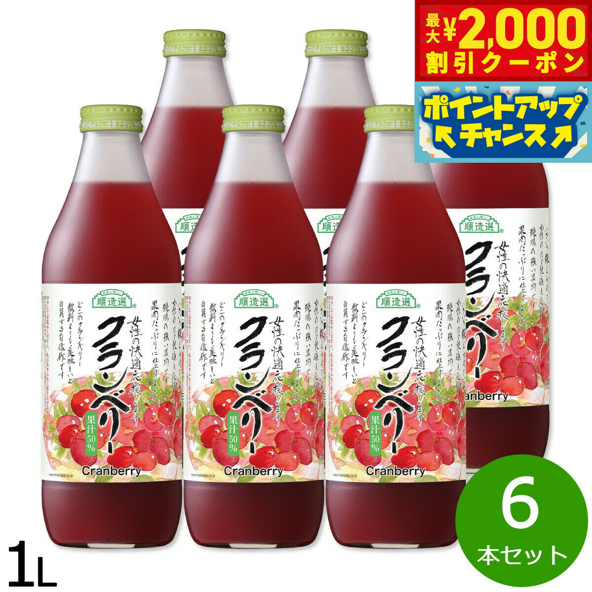 【最大2000円OFFクーポン!&店内ポイント最大54倍!本日限定!】順造選 クランベリー 1L×6本セット ジュース ストレート 果汁50 無添加 無香料 瓶 日本製 粗搾り 果肉入り 【送料無料】 7,776 ~
