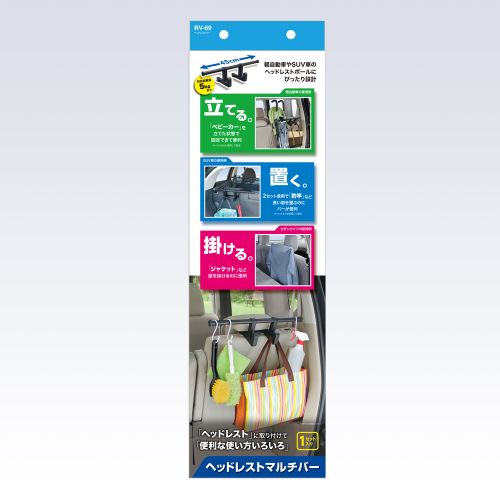 ヘッドレストに取り付けていろいろな使い方ができる便利なマルチバー&フック。 ●ヘッドレストに取り付けていろいろな使い方ができる便利なマルチバー&フック。 ●マルチバー&フックの1セット入り。 ●ヘッドレストポールに簡単装着。 ●マルチバーにハンガー等をそのまま掛けたり、フックにバッグ等を引っ掛けて使用する。 ●2セット使用すれば、釣竿等の長いものをのせることができる。 ●対応総重量:約5kg。 ●カラー:ブラック。 ●ご使用上の注意をご使用前に必ずお読みください。