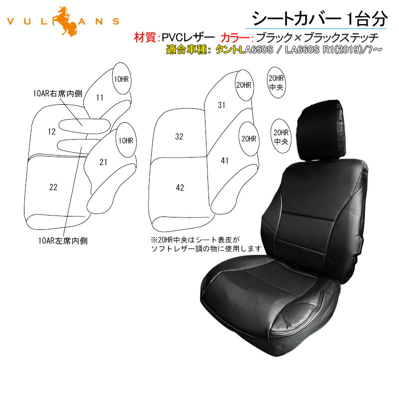【Vulcans】タントLA650S / LA660S シートカバー 1台分 ブラック×ブラックステッチ カー用品 シートカバー 内装 パーツ カーシート ペット 防水 15,421 ~