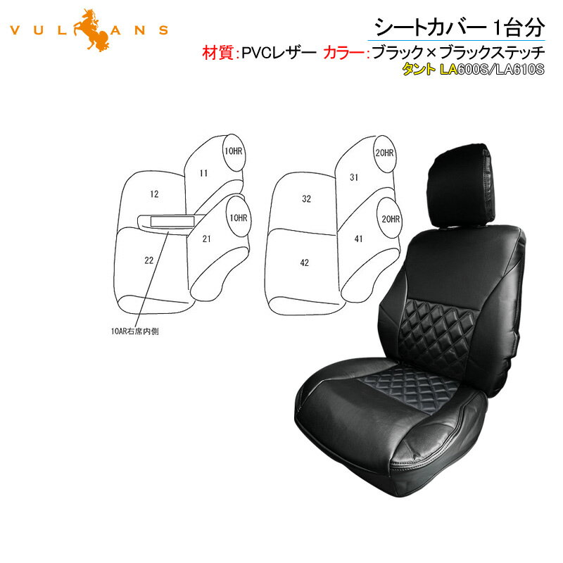 【Vulcans】【即納】タント LA600S/LA610S シートカバー 1台分 ブラック×ブラックステッチ カー用品 シートカバー 内装 パーツ カーシート ペット 防水 17,980 ~