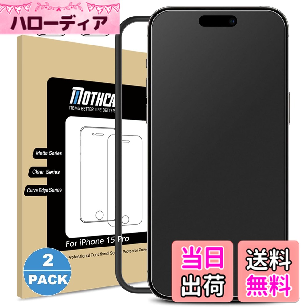 【送料無料】Mothca 2枚セット アンチグレア iPhone 15 Pro対応 ガラスフィルム+カメラフィルム(2枚) 保護フィルム 強化ガラス サラサラ タッチ感 ゲームフィルム ガイド枠付き 液晶 日本旭硝子製素材 指紋/反射防止 硬度9H 飛散/キズ防止 衝撃吸収 撥油性 疎水 3,318 ~