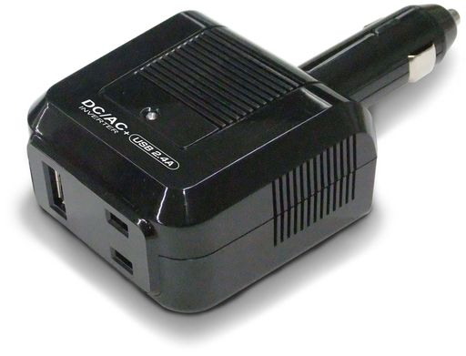 USB端子 出力電圧DC5V 最大出力2.4A 定格出力2.1A入力電圧DC12V(動作電圧範囲12.0V~14.5V) 使用温度範囲-20℃から+40℃ 本体ヒューズ容量40A(平型ヒューズ) 本体サイズ90(W)X137(D)X49(H)mm [突起部除く] 本体重量580g コード長バッテリー接続コード/70cm シガープラグコード/70cm(15Aヒューズ内蔵) 付属品バッテリー接続コード/シガープラグコードインバーター部 出力電圧AC100V 瞬間最大出力700W(0.1秒以内) 最大出力350W 定格出力280W 出力周波数55Hz 出力波形矩形波 変換効率80%以上 回路方式P.W.M.方式インバーターパッケージ重量: 0.89 kg●コンパクトな軽量ボディです。 ●USB・ACコンセントの同時利用が可能です。 ●トラブルを未然に防ぐ6つの保護機能を搭載しています。 ●出力容量が最大出力容量を超えると、PROTECTランプが点灯し、強制的に電源を切ります。 ●出力(AC100V側)でショートすると出力を停止し、その原因が取り除かれると自動的に復帰します。 ●入力電圧が約9V(12V)/18V(24V)以下に低下すると、PROTECTランプが点灯し、強制的に電源を切ります。 ●製品内部の温度が高温になると、PROTECTランプが点灯し、強制的に電源を切ります。 ●入力電圧が約16V(12V)/32V(24V)以上になった場合に、PROTECTランプが点灯し、強制的に電源を切ります。 ●入力(DC12V側/DC24V側)で(+)と(-)を逆にした場合、ヒューズが切れます。 ●スマートフォンや携帯ゲーム機など色々な充電に。 ●USBでの充電やノートPCなど車中での利用に。 ●乗用車など12V車で充電に。