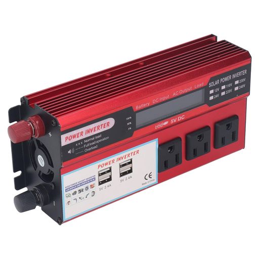 回路の保護:インバーターは、過熱、低電圧充電、短絡、過負荷、過充電に対する保護を行い、安全な動作を確保します。 優れた放熱性:改良された正弦波インバーターは、サイレントファンと組み合わせたアルミニウム合金ケーシングを採用し、良好な放熱効果を確保します。 仕様:このパワーインバーターは、3つのACUSソケットと4つのUSB高速充電ポートを備え、500Wの連続電力を提供し、便利で実用的です。 LCDディスプレイ:インバーターはLCDデジタルディスプレイを採用しており、バッテリー容量、入力および出力電圧などの機器の使用状況をいつでも簡単に観察できます。 シガーライターポート:カーチャージャー、BluetoothFMコンバーター、加湿器などを介して他のデバイスに接続できるシガーライターポートを装備しています。