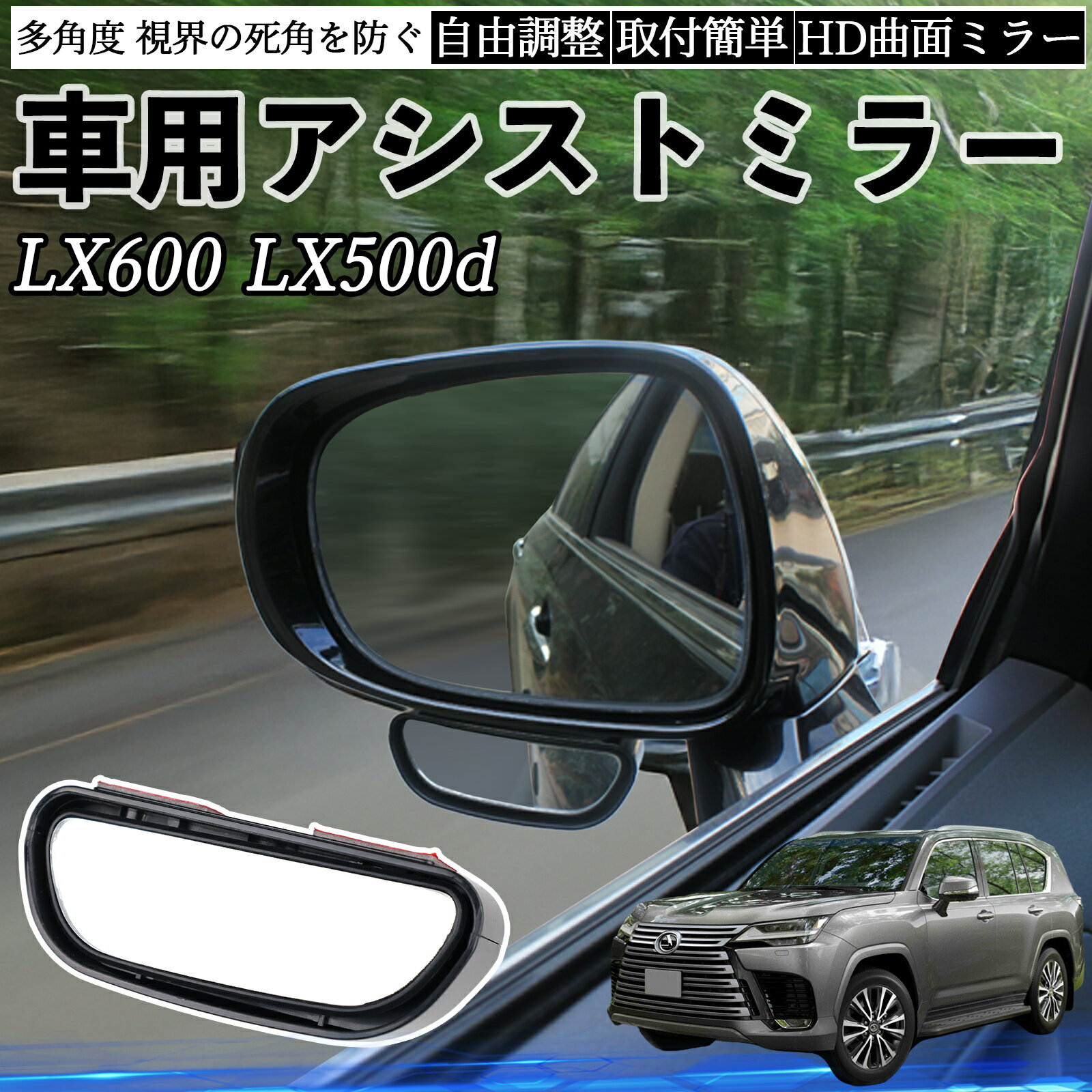 商品説明 適合車種LX600 LX500d セット内容補助ミラー×2 商品の特徴 広範な適合性&高品質視界ほとんどの車種に対応。 死角を補い、HDガラスでクリアな映像を提供。 防錆仕様で曇りにくく、雨天でも安心。 取り付け簡単工具不要、両面テープを剥がしてサイドミラーに貼るだけ。 強力接着剤で防水・耐久性が高く、剥がした後も跡が残らない。 広角視野の拡大反射角度を自由に調整可能。 斜め後方や下方の死角をカバーし、追い越し・駐車・バック時などに安全で広い視界を確保。 注意事項 ※※設置前に必ず設置面を清掃し、脱脂してからしっかり固定してください。 固定が不十分だと走行中に外れる恐れがあります。 ※※組み立て後48時間以内は水(洗車など)に触れないでください。 接着剤が十分に硬化する時間を確保する必要があります。 ※※取付や使用によるトラブル、事故などに関して、弊社は一切の保証をいたしません。 安全運転を心がけてください。 ※※強い衝撃や不適切な使用は避けてください。 落下や破損の原因となります。 ※※輸入商品のため、製品に小傷や汚れがある場合があります。 使用上問題のない範囲の仕様です。