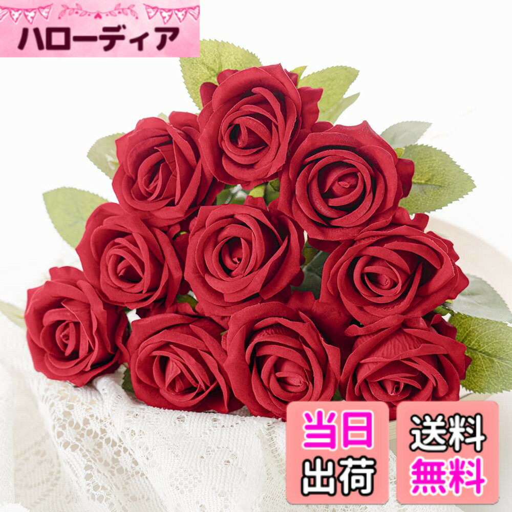 【送料無料】造花 枯れない花 バラ ローズ 薔薇 インテリア造花 フランネル素材で色落ちや変色心配必要がなし 自然な雰囲気 プレゼント 大切な人へ感謝の気持ちを伝える造花 (10本, レッド) 3,788 ~
