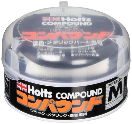 微香性 【特長】ブラック・メタリック・濃色車用に開発され光沢復元効果に優れています。 ワックス成分を配合した艶出し専用のノーシリコンコンパウンド。 厳選された研磨粒子と程よい粘度で、伸びが良く研磨性に優れています。 仕上がり感がとても美しく、ツヤ出しに優れたコンパウンドです。 【用途】補修塗装の粗削りやサビ落とし、金属加工、塗装前の下地処理やキャンプ・登山用品等のお手入れにペイントの仕上げに。 水アカ、ピッチ、タール落としに。 荒れた塗装面のツヤの復元に。 金属の仕上げ加工に 【使用方法】●柔らかい布に適量付け、直線的に磨いてください●研磨後は良くふき取ってください●小面積毎に仕上げて下さい※ひび割れてツヤがなくなっている塗装面には効果が得られません※ライトカラー、メタリック、パールマイカ塗装者にはMH250、通常のホワイト塗装車にはMH251、ホワイトパールマイカ、ブラック、ブラックメタリック、濃色塗装車にはMH252をご使用ください。 【セット内容】コンパウンド200g、クロス1枚 Holts(ホルツ)補修用品コンパウンド半練りタイプティンコンパウンドブラックメタリック&濃色車用HoltsMH252 1,764 ~