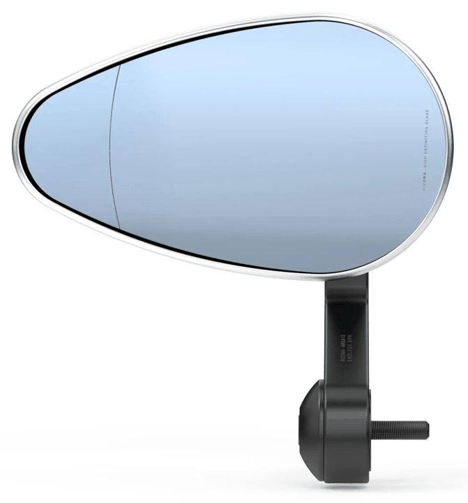 旧車テイストのレトロな雰囲気を放つ丸型ミラー。 耐震性と広角ミラーの組み合わせにより、視認性も確保しています。 鏡内部に亜鉛製の「おもり」を入れることで振動を軽減しミラーのブレを抑制。 直径12mmの極太ロッドを採用し、鏡の取付強度を高くすることで振動の多いバイクにも対応します。 一般的な純正ミラーが曲率R1200-1300に対し、R1000の鏡面を採用しているので、後方視界を広く確保できます。 ・新保安基準条件付適合(2007年以降の車両は別途緩衝装置の取り付けが必要)・タイプ:ショート / クロームメッキ・サイズ:M10正ネジ・鏡面にレーザーマーキング入り・左右共通 片側1本入り※ 鏡面積は新保安基準に適合したサイズですが、衝撃緩衝装置が無いため、新保安基準適合外となります。 2007年以降のモデルは別途緩衝装置の取り付けが必要です。 ※ 本商品は、ワイドミラータイプとなっております。 遠近感が純正と異なります。 慣れるまで慎重に運転するように心がけてください。 ※ 適切な後方視界が確保できるようにミラーは左右に取り付け、かつ適正な位置に調整してください。 ※ この商品を取り付ける際にM10ボルトの締め付けトルクは車両毎の指定値にて締め付けてください。 ※ ミラーハウジング取り付け部分のミラーナットの締め付けトルクは15N・mです。