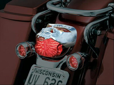 【商品説明】Kuryakyn製【ZOMBIEシリーズ】のテールライトカバーです。 Kuryakynならではの美しいクローム、複雑かつ大胆にデザインされたスカルが自慢の愛車にインパクトを与えてくれます。 今までのテールライトカバーにはなかった大胆さが見る者を圧倒します。 【備考】・カラー:クローム・1973〜24年すべてのモデルに適合・VRSCモデル、XR、XG、XL883N、XL1200CX、XL1200N、XL1200V、XL1200X、2011年以降XL1200C、FXWG、FXDLS、FXDF、FXDWG、FXソフテイル、FXSE、FLS、FLSTS、FLSTSB、FLSTN、FLHX、FLHTCUTG、2017年以降FLRT、2009年以降FLHR、FLTR、FXDB、2014年以降FLHXS、FLHRSE、FLHTKSEは装着不可・kuryakyn製ハーレー カスタムパーツテールカバー