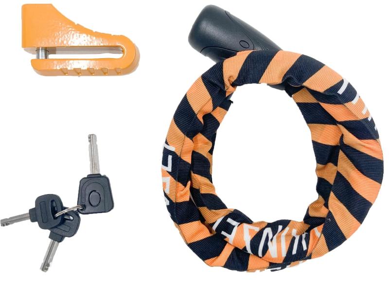 商品名 ■KOVIX アラーム付きディスクロック KS-6 蛍光オレンジ 商品説明 ■コンパクトサイズのアラーム付ディスクロックです。 ■アラームユニットは充電式なので、面倒な電池交換等が無く経済的です。 ■1回の充電で約3ヶ月作動します。 (※アラームの作動回数等によって変化します)■手のひらサイズで小さく軽い!持ち運びにもとても便利です。 ■ブレーキディスクに取り付けてキーシンダーを押し込むだけ。 ワンプッシュで簡単にロック出来ます。 ■車体を動かす等の振動を感知すると120dBの大音量アラーム音が鳴り、愛車の盗難やイタズラ防止に威力を発揮します。 ■ロック運搬時の誤作動や、駐輪環境に応じてアラームOFFモードに切り替えができます。 ■屋外での使用に充分耐えられる防水仕様、特殊な表面処理を施す事で高級感のある仕上がりとなっています。 商品サイズ ■ロックピン径:5.5mm■ディスクインサート幅:8mm■長さ:約50.5mm■幅:約41.45mm■高さ:約52.9mm■本体重量:約270g※若干の寸法誤差はご了承願います。 商品セット内容 ■ディスクロック本体×1■専用キー×3■六角レンチ×1■USB充電ケーブル×1■説明書(英文)×1 注意事項 ■保証書は有りません。 ■ご利用のオートバイのブレーキディスクサイズをご確認くださいますようお願い致します。 梱包サイズ ■荷物のサイズは60です。