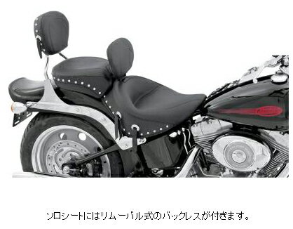 【商品説明】 座り心地のよいワイドサイズのソロシートにバックレストが付属されており、長距離のライディングをサポートします。 リムーバル式のバックレストなので、必要ない時は外しておけるのも良いところではないでしょうか。 シートサイドに装飾されたスタッズがクラシカルな雰囲気を演出します。 【備考】 2006〜17年ダイナモデルに適合ソロシート(ライダー側)とリアシート(パッセンジャー側)は別売りになります。 Mustang(マスタング)ハーレー カスタムパーツ