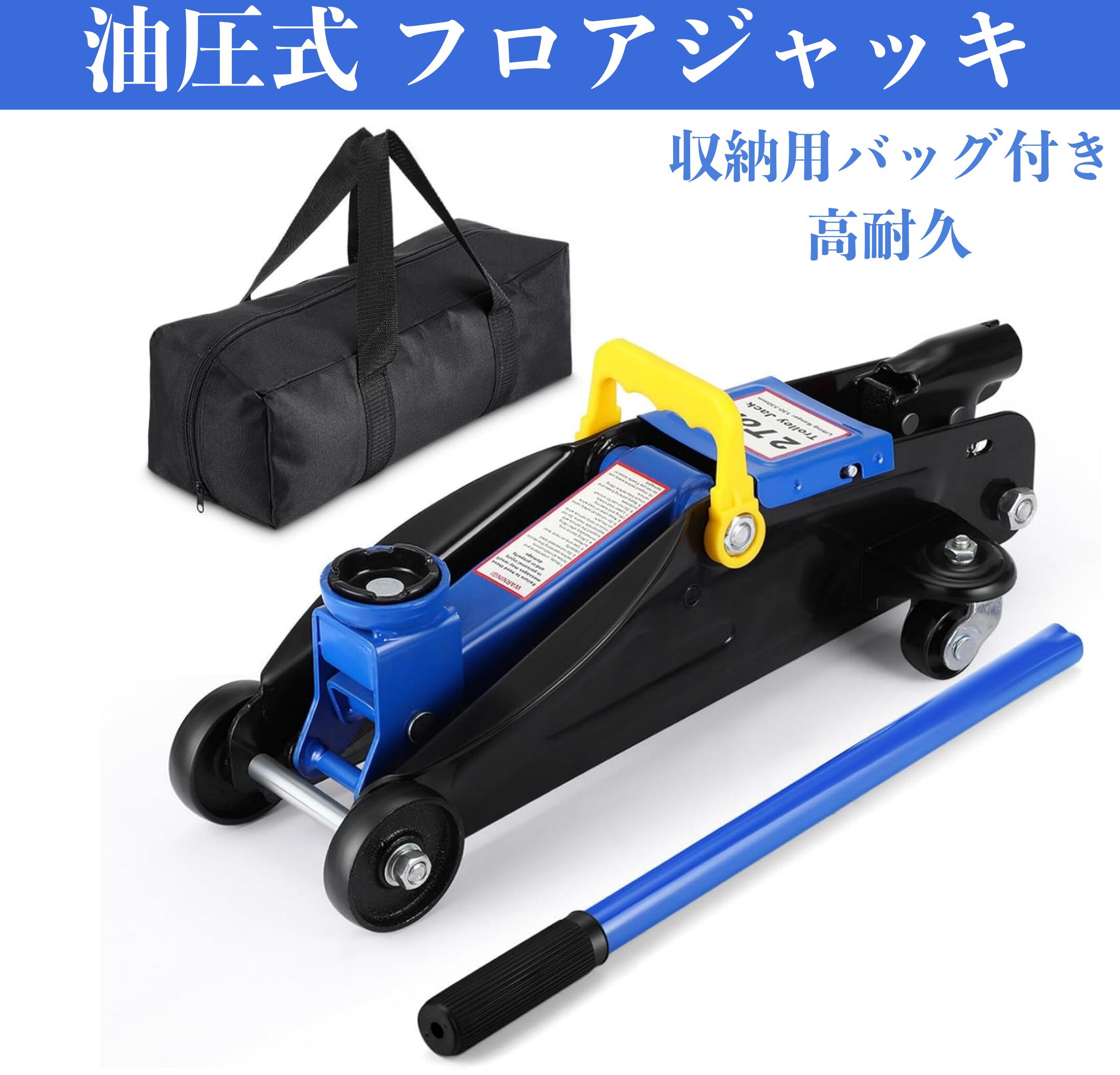 メーカー希望小売価格はメーカーサイトに基づいて掲載しています。 商品仕様 商品名 油圧式 フロアジャッキ 製品詳細 【積載量】:2 トン 【最大リフト高度】:330 ミリメートル 【寸法】:44 長さx 20.8幅x 12.7 高さcm 【色】:レッド ブルー 【重さ】:8.5kg 【材質】:スチール製 おすすめポイント 「仕様」 最大耐荷重:2t;最低位:130mm、最高位:330mm;本体サイズ:約W437*D208*H127mm;重さ:8.5kg;色:ブルー レッド ;付属品:収納バッグ。 「使用便利・安定性抜群」 油圧式のため、少ない力でポンピングするだけで車をラクラク持ち上げられます。 スチール製で錆に強く、耐久性にも優れています。 また、降下時には緩やかに降下する機能を採用しているため、お客様の安全が守られます! 「収納しやすい・スムーズな移動」 本体の重さは8.5kgという軽量でコンパクトなフロアジャッキは、収納バッグが付いているため、車のトランクに入れることができ、場所を取りません。 後輪には360度回転式のキャスターを備え、横移動や旋回などの動きができ、スムーズに移動できます。 「ジャッキアップ・ジャッキダウンが簡単」 ハンドルをリリースパルブに差し込み、時計回りに締めつけ、上下にポンピングし、ジャッキアップできます。 リリースパルブを反時計回りにゆっく り回し、ジャッキダウンします。 「最大耐荷重2トン」 最大耐荷重2トンを備えており、普通車、軽自動車、SUVなど幅広い車類の整備やタイヤ交換に使用できます。