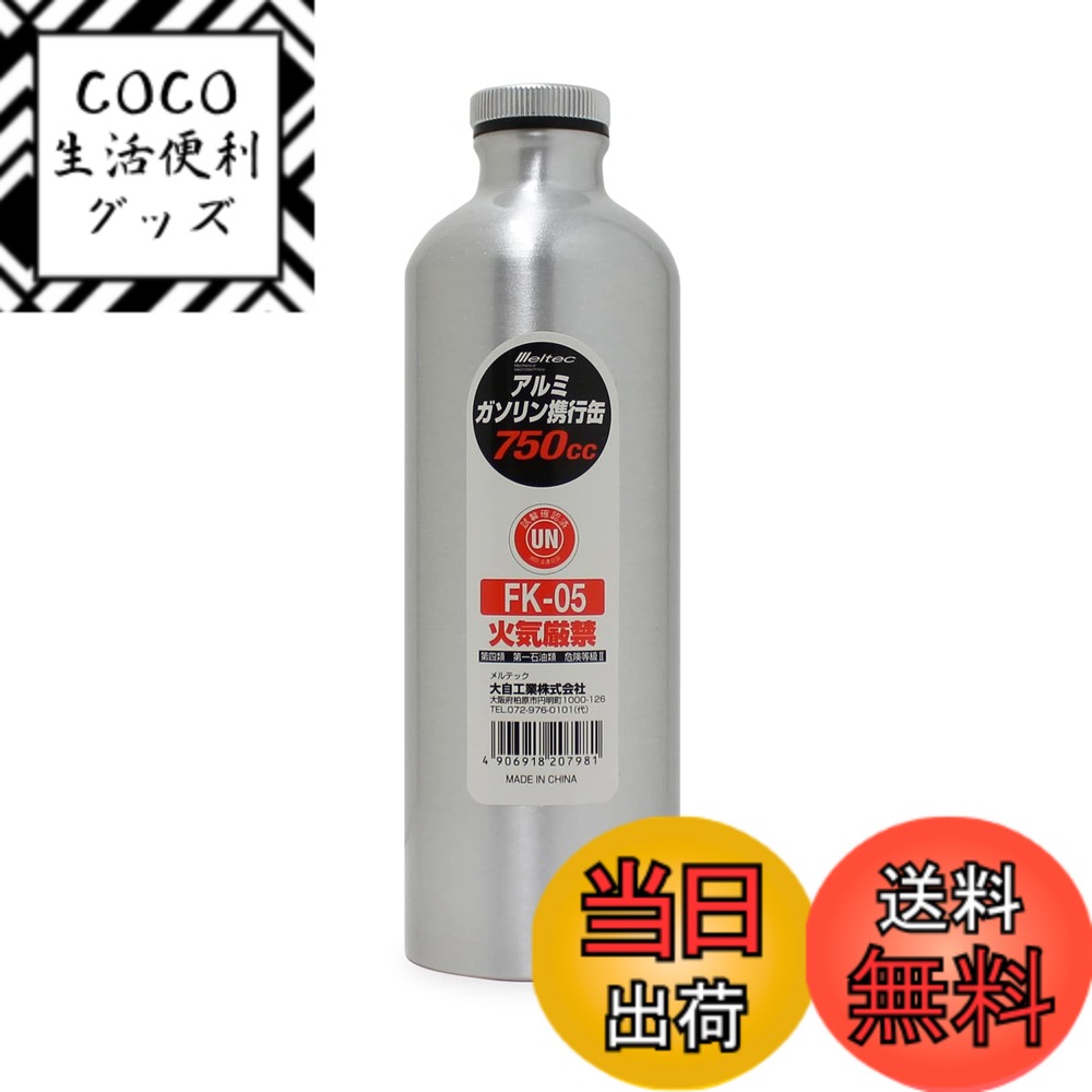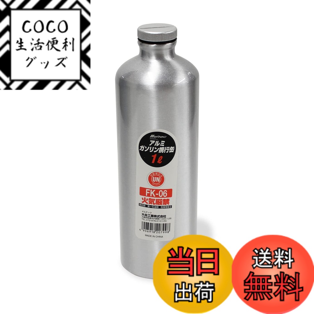 商品情報商品の説明商品紹介 ●ガソリン・混合油・オイル・軽油・灯油等が安全に持ち運べる。 ●UN規格取得/消防法適合品 ●収納袋にカラビナ・ベルト通し穴がついているので持ち運びに便利。 ●ツーリングに:軽量・スリムなので収納スペースをとりません。 ガス欠時の緊急補給に。 ●草刈り機に:給油タンクを※約1.5回満タンにできます。 (※23ccクラスの場合※タンクの形状により満タン回数が異なります。 ) 使用上の注意 ●ガソリン等が車体に付着した場合は、ただちにウエス等で拭き取ってください。 ●誤って皮膚に付いた場合は、直ちに石鹸等で十分に洗浄し、異常があれば医師の診察を受けてください。 ●長期間使用しなかった場合には、ガソリン携行缶本体、キャップ、給油ノズル、パッキンを点検し、それぞれの部品に異常がないか確認した後、使用してください。 ●給油ノズル、パッキンは消耗品です。 ご使用前に劣化していないか確認し、劣化が見られる場合は交換してください。 安全警告 ●ガソリン携行缶には、規定容量以上のガソリンを入れないでください。 ●ガソリン携行缶には、ガソリン、軽油、灯油、混合油等(第四類 第一石油類危険等級II)以外の物は入れないでください。 ●本製品を使用する前に「キャップ、給油ノズル」が確実に脱着できるか必ず確認してください。 不具合があった場合はただちに使用を中止してください。 ●ガソリンの長期保管は、缶の内部が腐食する原因になります。 ●ガソリン携行缶の保管には、内容物の有無にかかわらず、直射日光が当たる場所、火の近くや転倒しやすい所、密閉した車内、室内には置かないでください。 主な仕様 原産国:中国材質:本体:アルミニウム アルマイト加工/キャップ:アルミダイキャスト/給油ノズル 締付部:PE 、ホース部:PVC/収納袋:不織布本体サイズ:約φ73x230(H)mm(キャップを含む)梱包サイズ:8.5 x 8.5 x 28.5 cm 【送料無料】メルテック(meltec) ガソリン携行缶 1L 消防法適合品 サイズ:小型 2,798 ~