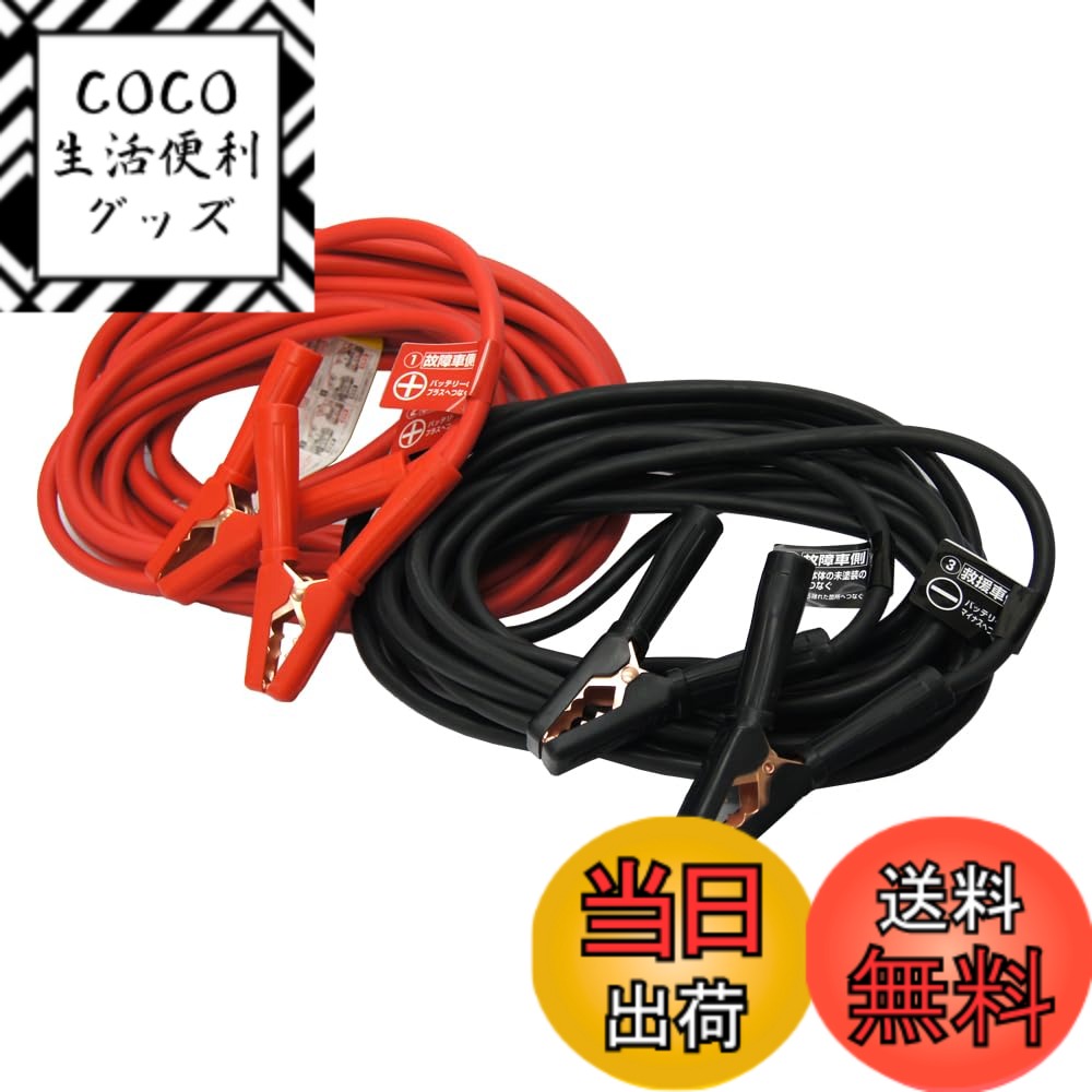 商品情報商品の説明商品紹介 ●突然のバッテリーあがりに安心! 誰でも安心・安全に使用できる。 ブースタークリップに付いているタグの番号順につなぐだけ! 安全な絶縁カバー付! 安全警告 【使用上の注意】 ※本製品を正しく安全にご使用いただく為に、取扱説明をよくお読みになり、十分に理解されるまで作業をおこなわないでください。 ※車に合ったブースターケーブルをご使用ください。 容量の小さいブースターケーブルご使用になりますと、エンジンがかからなったり、ケーブル、クリップクリップカバーが発熱・発煙・溶解するおそれがあります。 ※救援車はバッテリー容量が同じか、それ以上の車を選んでください。 ※ブースターケーブルによる始動の場合は、正しい順序で接続してください。 ※ブースターケーブルによるエンジン始動でエンジンがかからない場合は、補充電をしてください。 補充電をすることでエンジンが始動しやすくなります。 ※接続作業時に、誤接続(取扱説明以外の接続)・ショート(赤クリップと黒クリップの接触)はしないでください。 ケーブル・クリップ・クリップカバー等が発熱・発煙・溶解したり、バッテリーから発生する可燃性ガスに引火して爆発する恐れがあり危険です。 ※ご使用中、火気に近づけたり引火しやすい物のそばで使用しないでください。 バッテリーが爆発するおそれがあり危険です。 ※100A・120Aのブースターケーブルは、ブースタークリップの大きさによりハイブリッド車に使用できない場合があります。 ※ハイブリッド車の駆動用バッテリーへのブーストは使用できません。 主な仕様 突然のバッテリーあがりに安心![ 目安適合車種 ]軽トラック・軽自動車・コンパクトカー・トラクター・コンバイン [ 目安バッテリーサイズ ]A19~B24 [ 仕様 ]DC12V用 [ 電線仕様 ]11.6平方mmbr[ 外径 ]Φ10.5mm [ 長さ ]10mbr原産国:中国 【送料無料】22 色:レッド/ブラック、サイズ:[ 外径 ]Φ10.5mm [ 長さ ]10m 6,292 ~