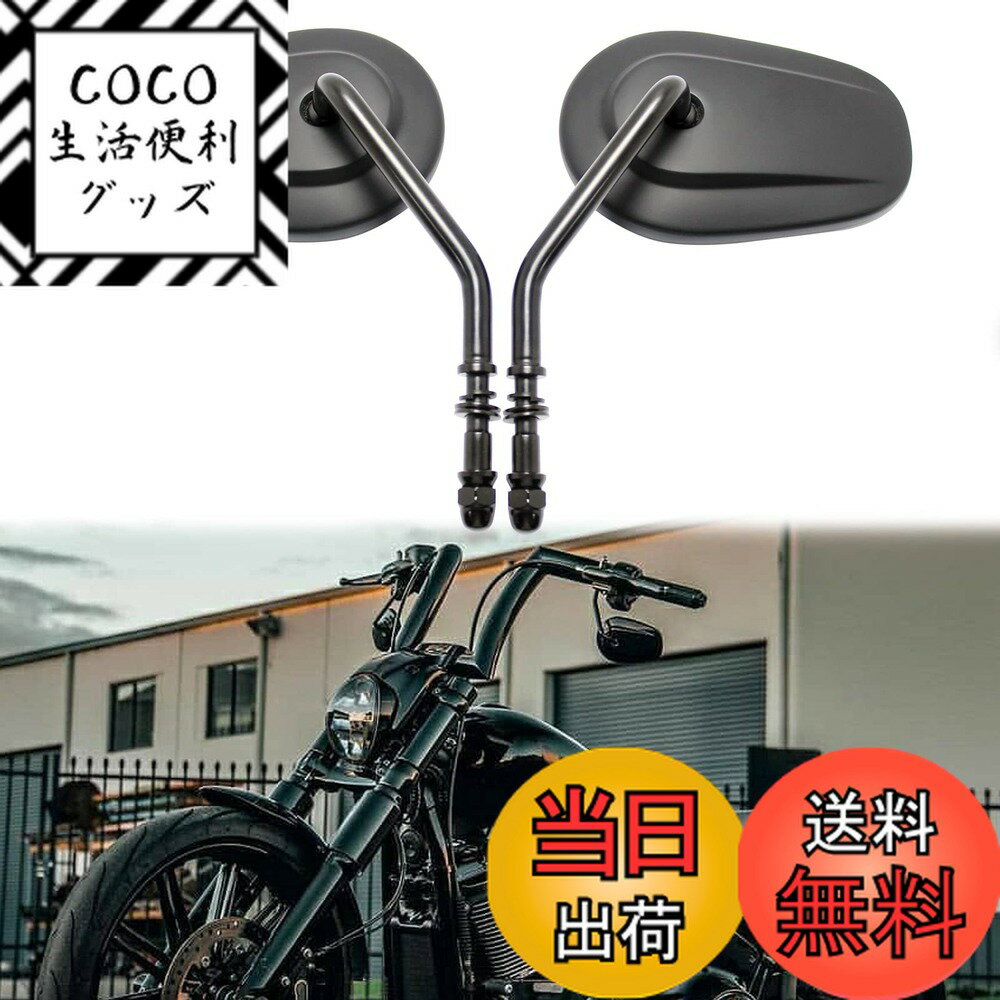 【送料無料】ハーレー バイクミラー 楕円 アルミ製 ブラック 8mm正ネジ 左右セット 5,659 ~
