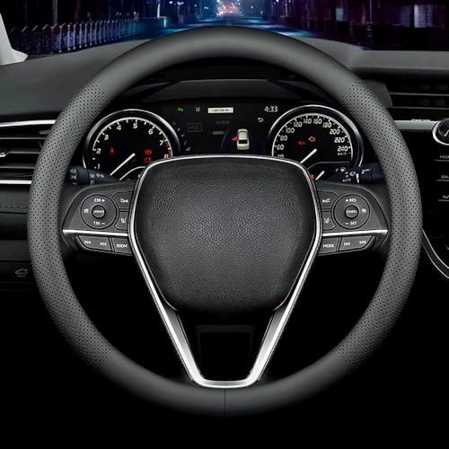 最新ナパ本革ハンドルカバー 滑り止め自動車内装15インチ(約38 cm) 汎用 (ブラック) 6,292 ~