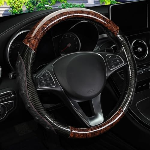 車のステアリングホイールカバー 木目調 極薄カーボンファイバー オールシーズン万能 吸汗性 滑り止め(ブラウン) 6,468 ~
