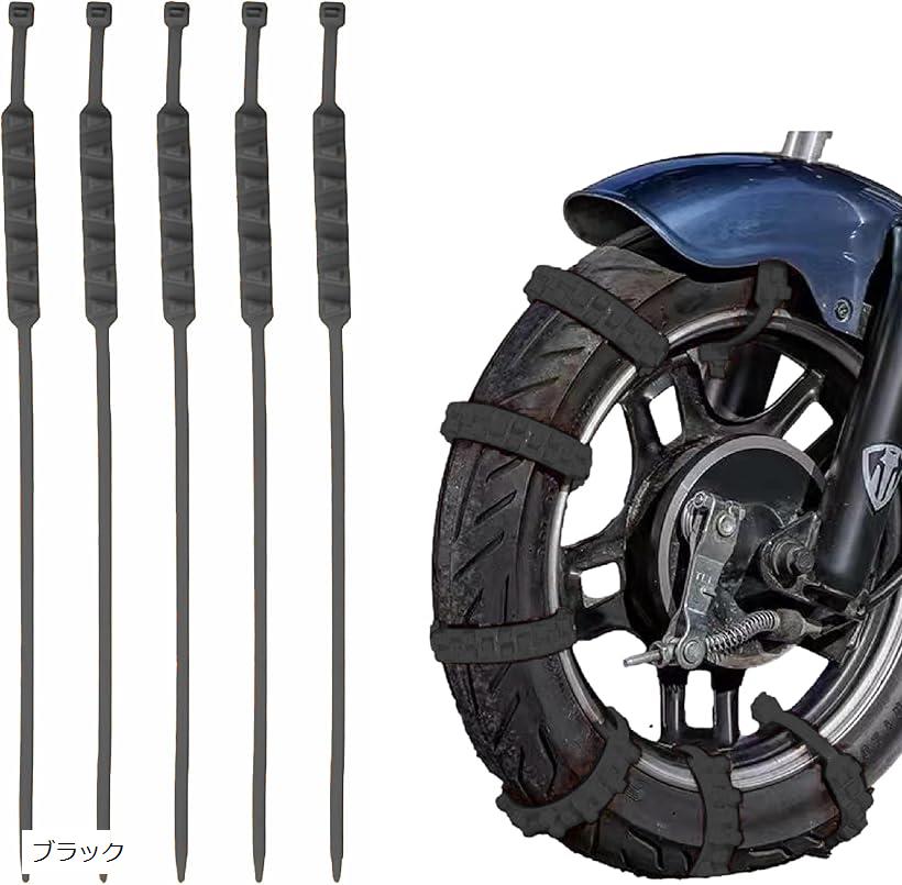 オートバイ用 タイヤチェーン 非金属タイヤチェーン スノーチェーン バイク 簡単装着 滑り止め 簡易チェーン 緊急脱出 雪道 凍結 20本セット ブラック (小) 1,880 ~