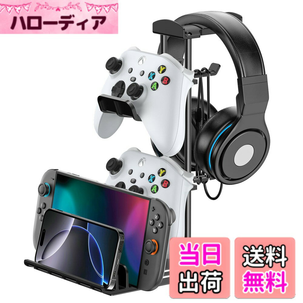 【送料無料】KDD ヘッドホンスタンド ゲームコントローラーホルダー&ヘッドセットホルダー デスク用 イヤホンスタンド アルミニウムサポートバー付き ユニバーサル収納オーガナイザー ヘッドホン/コントローラー/スイッチ/iPad/携帯電話 3,799 ~