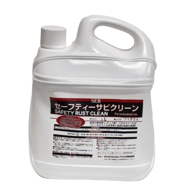 中性で鉄粉が落とせます。 環境・素材に対してやさしい。 鉄粉と反応して色が変わるために鉄粉の除去状態が肉眼で確認出来ます。 アイアンクリーナー(香料入り姉妹品)があります。 (用途) 自動車のボディー・アルミホイールの鉄粉取り・鉄粉チェッカー剤・建物の錆びダレ除去 (使用方法) ・予め洗浄対象の鉄粉やサビ以外の汚れを洗い流します。 ・鉄粉汚れやサビだれに向かってスプレーします。 ・洗浄液が赤く反応してから2〜3分後に水でよくすすぎ洗いしてください ※特殊な物・外国製品・メッキ類などは変色する恐れがありますので必ず差し支えない部分でテストを行ってからご使用ください。 内容量:4L×4本入 (備考)液体・中性類似商品はこちらセーフティーサビクリーン 自動車 用 鉄粉除去46,046円セーフティーサビクリーン 自動車 用 鉄粉除去43,816円Sクリーン スピードスプレーヤー洗浄剤 石灰 19,734円鉄粉除去剤 強力アイアンクリーナー 4L 洗浄10,725円スケール 除去剤 R 配管 内部 洗浄剤 4.26,598円鉄粉除去剤 強力アイアンクリーナー 20L 洗26,030円スケール 除去剤 RF 配管 内部 洗浄剤 430,030円4L Sクリーン スピードスプレーヤー洗浄剤 5,577円Sクリーン スピードスプレーヤー洗浄剤 石灰 13,442円新着商品はこちら2026/1/23LP350円弧アタッチ オプション HP-165,206円2026/1/23苗おさえ棒 コンパクト ひっぱりくん オプショ5,921円2026/1/23長わら 1kg 園芸用敷わら 臼井農畜産 蒸気930円再販商品はこちら2026/1/2310枚 あぜ板なみ 巾600×長さ1200×厚8,023円2026/1/2380巻 たばねらテープ 640-FPS HVP53,826円2026/1/23受注生産 バロンモッコ PP 4点吊タイプ 564,350円2026/01/23 更新自動車整備工場用洗浄剤・自動車メンテナンス・整備工場関連 セーフティーサビクリーン 自動車 用 鉄粉除去剤 4L×4本入サンエスエンジニアリング オK 代引不可 49,764 ~