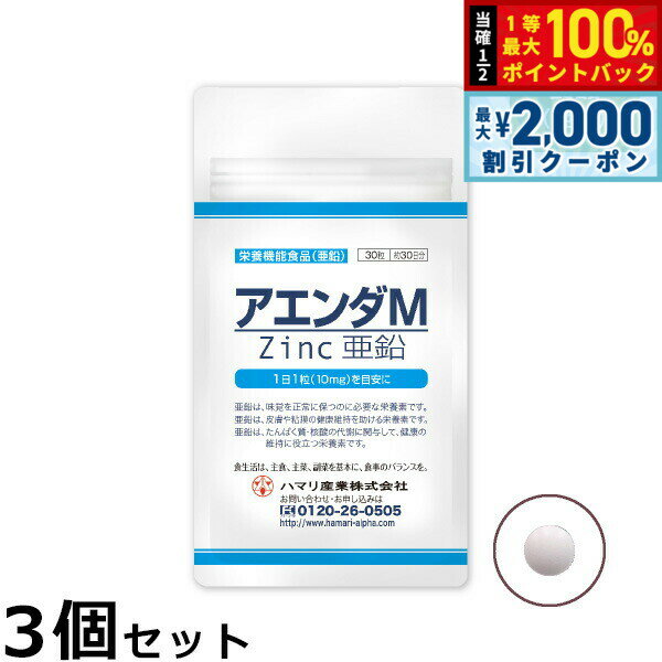【25日限定!2000円OFFクーポン&抽選で最大10000ptバック】ハマリの健康食品 アエンダM 90粒×3個セット【送料無料】 国産 サプリメント 亜鉛 スポーツケア 美容 ヘルスケア 栄養機能食品 6,480 ~