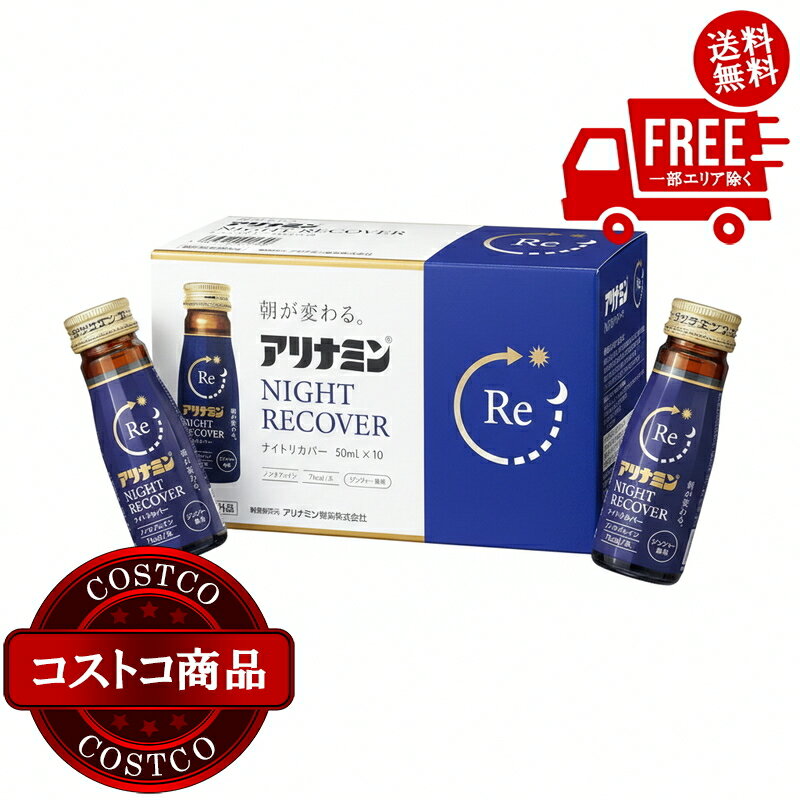 寝る前に飲むと、寝ている間に有効成分がカラダに浸透し、疲労を回復抗疲労成分「フルスルチアミン」、グリシンを配合、栄養不良に伴う睡眠の質 (眠りの浅さや目覚めの悪さ) を改善します睡眠を妨げるカフェインが入っていません。 飲みやすいジンジャー風味、1本7kcalの低カロリー特徴その他分類指定医薬部外品【PDF】添付文書効能1.疲労の回復・予防2.体力、身体抵抗力または集中力の維持・改善3.日常生活における栄養不良に伴う?身体不調の改善・予防-寝付きが悪い、眠りが浅い、目覚めが悪い-疲れやすい、疲れが残る、体力がない、?身体が重い、身体がだるい?-肩、首、腰または膝の不調-二日酔いに伴う食欲の低下、だるさ-目の疲れ-肌の不調(肌荒れ、肌の乾燥)4.病中病後の体力低下時、発熱を伴う消耗性疾患時、?食欲不振時、妊娠授乳期または産前産後等の?栄養補給??用法・用量15歳以上は1日1回1ビン(50mL)を服用してください用法・用量を守ること(他のビタミン等を含有する製品を同時に使用する場合には過剰摂取等に注意すること)?Q&A 製品に関する質問?Q. 長期間毎日飲み続けると、効かなくなることはないですかA. 長く飲み続けることでカラダが成分に慣れてしまって、効きにくくなるといったことはございません。 用法・用量、使用上の注意を守って服用ください。 ?Q. いつ飲んだらよいですか?A.? 今、疲れを対処したいときに適しています。 疲労の回復だけでなく予防にも効果的です。 疲れがたまりがちといった時には、ドリンク剤より「フルスルチアミン」の含有量が多い錠剤が効果的です。 ?成分1ビン(50mL)中 ・フルスルチアミン塩酸塩1.1mg ・ニコチン酸アミド60mg ・タウリン1500mg ・イノシトール50mg ・ピリドキシン塩酸塩5mg ・リボフラビン酸エステルナトリウム15mg ・グリシン50mg ・カルニチン塩化物50mg 添加物:エリスリトール、アセスルファムカリウム、スクラロース、D−ソルビトール、DL−リンゴ酸、安息香酸Na、没食子酸プロピル、香料、エタノール、pH調整剤 送料無料!(コストコ) 【指定医薬部外品】 アリナミンナイトリカバー 50ml x 10 ※ご注文後2-3日以内にお届けします 1,730 ~