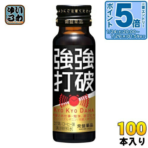 > こちらの商品の単品・まとめ買いはこちら【一個あたり 270円(税込)】【賞味期間】製造後24ヶ月【商品説明】超ハードモードの時も、スマートに切り替え!甘さひかえめ「コク深いコーヒー味」・1本でレギュラーコーヒー2.5杯分のカフェイン量!・菊花抽出物、アルギニン、高麗人参、ガラナ配合・こだわったコク深いコーヒー味で飲みやすい・50mLなので、1ショットで飲んでサッと次のアクションに移れる【名称および品名】清涼飲料水【エネルギー】1本(50ml)あたり20.4kcal【栄養成分】たんぱく質 1.4g、脂質 0g、炭水化物 3.7g、食塩相当量 0.0106g【原材料】砂糖(国内製造)、コーヒー、黒糖蜜、ナルコユリエキス、菊花抽出物、ガラナエキス、高麗人参エキス、ハーブエキス末/酸味料、アルギニン、カラメル色素、香料、カフェイン(抽出物)、甘味料(アセスルファムK、スクラロース)【保存方法】常温【製造者、販売者、又は輸入者】常盤薬品工業株式会社【変更事項】ページリニューアル日:2022/08/09変更内容:パッケージ※北海道・沖縄県・離島(一部)へのお届けは決済時に送料無料となっていても追加送料が必要です。 (コカ・コーラ直送を除く)北海道1個口 715円(税込)、沖縄県1個口 2420円(税込)※離島・一部地域は追加送料がかかる場合があります。 追加送料の詳細は注文確定メールにてご案内いたします。 ※本商品はご注文タイミングやご注文内容によっては、購入履歴からのご注文キャンセル、修正を受け付けることができない場合がございます。 変更・修正ができない場合は、メール、お電話にてご連絡をお願い致します。 ■ 法人・団体のお客様 大口購入のご相談承ります ■法人のお客様、各種団体のお客様で、まとまった数量でのご購入をご検討の際は、お気軽にご相談ください。 お客様のご要望に合わせて柔軟に対応させていただきます。 まずはお気軽にお問い合わせフォームよりご連絡ください。 送料無料 栄養ドリンク きょうきょうだは KYO KYO DAHA 眠眠打破 みんみんだは MIN MIN DAHA カフェイン アルギニン 高麗人参 ガラナ お仕事 勉強 遊び コク深いコーヒー味 珈琲味 ケース まとめ買い セット 4987156814018 常盤薬品 強強打破 50ml 瓶 50本入 〔栄養ドリンク〕 13,500 ~