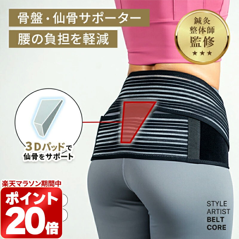 \500円OFFクーポン/腰サポーター 腰痛対策 コルセット 骨盤ベルト姿勢改善 腰の負担軽減 仙骨 サポート3Dパッド マジックテープ 調整可能立ち仕事 デスクワーク スポーツ鍼灸整体師監修STYLE ARTIST BELT CORE