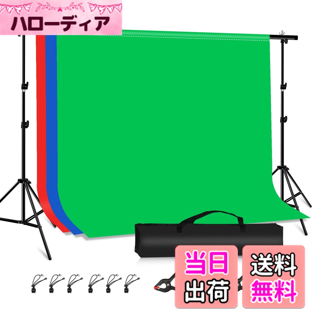 【送料無料】PULUZ バックペーパー 200×290cm背景布 背景スタンド2m×3m グリーンバック 背景フレームセット 撮影背景スタンド 写真撮影背景布 三脚付き グリーンスクリーン 3色ポリエステル背景(赤&青&緑) 組み立てが簡単 クロマキー合成/在宅テレビ会議/Zoom/全身写 10,439 ~