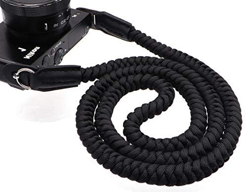 カメラストラップ パラコード編み ネックストラップ ショルダーストラップ 丸リング/リングカバー付き 一眼レフ/ミラーレスカメラ用 ブラック 全長105cm 4,928 ~