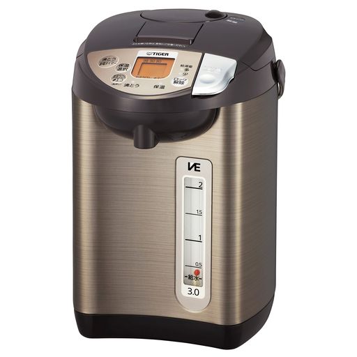 スタイル:2.ミドルレンジ/PIW-A型◆商品名:タイガー魔法瓶(TIGER) 電気ポット 蒸気レス 節電VE保温 7つの安心・安全構造 とく子さん 3.0L ブラウン PIW-A300Tワイド/赤玉水量計容量:3.0Lコード長さ:(約)1.0m通電時は指一本でらくにレバー式電動給湯、電源のないところではエアー給湯と、2通りの給湯方法が選べる電動&エアー給湯湯わかしと保温の両方が節電省エネコース説明■商品情報・本体サイズ:(約)幅21.5cm×奥行28.4cm×高さ32.3cm・本体重量:(約)3.0kg・容量:3.0L・コード長さ:(約)1.0m・年間電気代:(約)8,200円・湯わかし時の消費電力700W・電源:100V・付属品:マグネットプラグ・:1年■7つの安心・安全構造1. 転倒お湯もれ防止2. 自動ロック電動給湯3. VEまほうびん構造4. カラだき防止5. 傾斜お湯もれ防止6. 蒸気レス7. チャイルドロック タイガー魔法瓶(TIGER) 電気ポット 蒸気レス 節電VE保温 7つの安心・安全構造 とく子さん 3.0L ブラウン PIW-A300T 23,763 ~