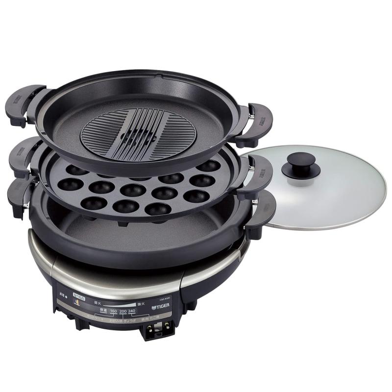 【中古】タイガー グリル鍋 3.7L プレート 3枚 タイプ 深鍋 たこ焼き 焼肉 プレート 蒸し台 蓋 付き ブラウン CQG-B300-T 28,500 ~