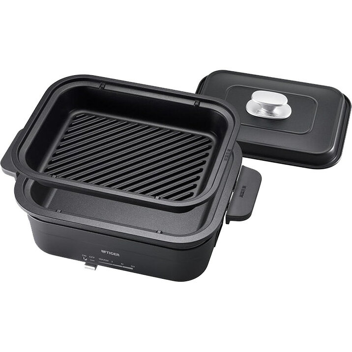 ご購入前に必ずにて商品の詳細をご確認下さい。 また、商品に関して何かご不明な点は下記までお問い合せ下さい。 タイガー魔法瓶お客様ご相談窓口(ナビダイヤル)0570-011101(ナビダイヤルがご利用いただけない場合)06-6906-2121※メーカーのサポート体制は予告無く変更・終了する場合がございます。 キッチンや食卓に出しっぱなしにできるコンパクトサイズ■なべ料理が楽しめる!深さ約46mmのなべ ■グリル料理が楽しめる!グリルプレート ■耐久性が高い!なべメタリックフッ素コーティング ■焼きムラができにくい!「3往復ヒーター」を搭載 ■食卓でたのしくテーブルクッキング!出しっぱなしにできるコンパクトデザイン ■操作しやすい温度調節レバー ■調理時の食材のこぼれ落ちを防ぐ大きめサイズのなべ ■マグネット式のプラグだから万が一コードを引っかけても安心 ■なべの持ち運びに便利なとっ手つき ■たこ焼きが作れるボールプレート<別売>にも対応 ◇定格電圧:100V ◇定格周波数:50-60Hz ◇容量:2.6L ◇定格消費電力:1200W ◇サイズ 幅×奥行×高さ(約):38.7×24.9×17.7(cm) ◇質量 (約):4.3kg ◇コードの長さ(約):1.8m ◇プレートの種類:なべ、グリルプレート、ボールプレート(別売) ◇なべ・プレートの寸法(内寸) (約) 幅×奥行 なべ:26.4×20(cm) グリルプレート:26.4×19.6(cm) ボールプレート:26.6×20(cm) ◇なべ・プレートの深さ (約) なべ:4.6(cm) グリルプレート:3.9(cm) ボールプレート:4.4(cm) ホットプレート プレート2枚 タイガー アイアンブラック CRL-A201-KI TIGER 【北海道・沖縄・離島配送不可】【KK9N0D18P】 12,480 ~