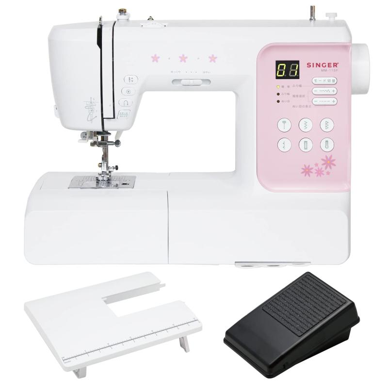 SINGER シンガー コンピューターミシン ワイドテーブル付き フットコントローラー付き ひらがな文字縫い MM-115P シンプル 初心者 コンパクト 入園入学 子育て【豪華特典】大きな生地を縫うときに便利な「ワイドテーブル」と足の踏み加減で縫うスピードを調整できる「フットコントローラー」をプレゼント。 【簡単操作】かんたん下糸セットや自動針穴糸通しなど初心者に嬉しい多彩な機能を搭載しています。 【99種類の縫いパターン】実用縫いやボタンホール、飾り模様はもちろん、80種類のひらがな文字縫いにも対応しています。 【安心サポート】商品レビュー・ショップレビューを投稿するだけで、期間が「1年」から「3年」に延長。 【付属品】ジグザグ押え・ファスナー押え・ボタンホール押え・ボタンつけ押え・縁かがり押え・ブラインドステッチ押え・サテン押え・ボビン・三角ドライバー・ドライバー(小)・ブラシ付きシームリッパー・針パック・シームガイド・糸コマ押え(大)・糸コマ押え(小)・補助糸立て棒・糸こま座・ソフトカバー・電源コード・取扱説明書・使用説明DVD SINGER シンガー コンピューターミシン ワイドテーブル付き フットコントローラー付き ひらがな文字縫い MM-115P シンプル 初心者 コンパクト 入園入学 子育て 35,778 ~
