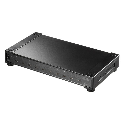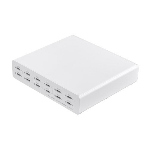 ↑↑↑正確な在庫状況は上記バナー「在庫状況を確認する」をクリックして頂き、必ずご確認ください。 ■最大10台のiPad・タブレットやスマートフォン、モバイルバッテリーなどのType-C充電機器をまとめて充電できるUSB Type-Cを10ポート備えたUSB充電器です。 ■USB出力は1ポートあたりUSB Power Delivery(USB PD)規格の最大60Wまで対応しており、合計最大350Wの高出力に対応したハイパワータイプです。 ※本製品にはUSB充電用ケーブルは付属していません。 ご使用になる機器に対応したUSB充電用ケーブルを別途ご用意ください。 ■iPadやタブレットなどを最大10台同時に充電することができるので、10台収納のタブレット保管庫にも最適です。 ■災害時にスマートフォンの充電希望者が多い場合にも、1つのコンセントからスマートフォン10台分まとめて充電できるので、ポータブル電源と組み合わせることでBCP対策としても最適です。 ■電源内蔵タイプで別途ACアダプタを接続する必要がなく、電源コードを接続するだけでスッキリと設置できます。 ■各ポート毎に充電状態が確認できる充電表示LED付きです。 ■本体の温度上昇を抑える冷却ファンを搭載しています。 ■一括電源スイッチ付きで一度に10ポートのON・OFFが可能です。 ■過電流保護や短絡保護などを搭載し、安全に使用することができます。 ACAPD96対応機種:USB Type-Cコネクタを搭載しUSB Power Delivery 60Wの規格内での充電に対応したスマートフォン、タブレット、ノートパソコンプラグ形状:2Pアースコード付きUSBポート数:10ポート使用温度範囲:5〜35℃定格入力:AC100-240V 50/60Hz定格出力電圧/電流:DC5V/3A、DC9V/3A、DC12V/3A、DC15V/3A、DC20V/3A(1ポート最大60W) ※10ポート合計最大350WまでUSB PD:対応USB出力端子形状:USB Type-C合計最大出力:350WUSB PD最大対応出力:60W通電確認LED:ありケーブル長:1.8m材質:スチールサイズ:W356×D197×H60mm重量:約2kgセット内容:本体、AC電源コード、専用スタンド、取扱説明書・保証書Type-C充電機器を最大10台まとめて充電できる