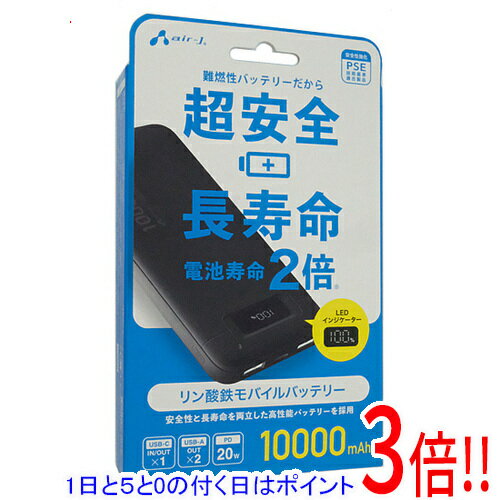 商品名エアージェイ リン酸鉄モバイルバッテリー 10000mAh MB-LS10000 BK商品状態 新品です。 特徴 超安全 + 長寿命 電池寿命 2倍 安全性と長寿命を両立した高性能バッテリーを採用 充放電 1000回 可能 商品名 リン酸鉄モバイルバッテリー 10000mAh 型番 MB-LS10000 BK 仕様 [基本仕様] バッテリー容量 10000 mAh ポート数 USB Type-A×2/USB Type-C×1 出力 USB-C:5V/2.4A、9V/2.22A、12V/1.67A (PD20W)Max/USB-A1/2:5V/3A、9V/2A、10V/2.25A、12V/1.5A Max USB PD ○ 飛行機内持ち込み可 ○ 最大出力電圧 3.65V [充電回数目安] 1000〜2000mAh 3〜7回 3000〜4000mAh 1〜2回 5000〜6000mAh 1回 7000〜8000mAh 1回 [サイズ・重量] 幅x高さx奥行き 67.4x149.3x16.5 mm 重量 213 g メーカー air-j(エアージェイ) 備考 PSマークの種類 PSEマーク 届出事業者名 株式会社エアージェイその他 ※商品の画像はイメージです。 その他たくさんの魅力ある商品を出品しております。 ぜひ、見て行ってください。 ※返品についてはこちらをご覧ください。 【1日と5.0のつく日、18日はポイント3倍!】エアージェイ リン酸鉄モバイルバッテリー 10000mAh MB-LS10000 BK 3,980 ~