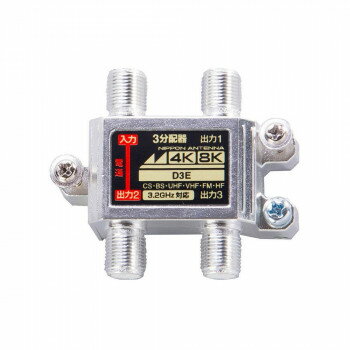 ※パッケージ、デザイン等は予告なく変更される場合があります。 ※画像はイメージです。 商品タイトルと一致しない場合があります。 3.2GHz対応の一端子電通型の3分配器です。 ダイカストケースを使用したシールド構造により、電波の漏洩・飛び込み防止に効果があります。 サイズ個装サイズ:7.8×6×2.8cm重量個装重量:80g付属品取付ねじ(本体取付済)×2、機能アースねじ(本体取付済)×1、F型接栓(5C)端子数分生産国中国広告文責:株式会社ホームセンターセブンTEL:0978-33-2811※パッケージ、デザイン等は予告なく変更される場合があります。 ※画像はイメージです。 商品タイトルと一致しない場合があります。 fk094igrjs 4K8K対応屋内用3分配器 D3E 2181602【メーカー直送:代金引換不可:同梱不可】【北海道・沖縄・離島は配達不可】 4,682 ~