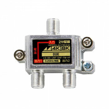 ※パッケージ、デザイン等は予告なく変更される場合があります。 ※画像はイメージです。 商品タイトルと一致しない場合があります。 3.2GHz対応の8分配器です。 入力・出力端子が同一方向なので配線が容易におこなえます。 入力端子と1出力端子間電流通過型です。 サイズ個装サイズ:15×15×15cm重量個装重量:130g仕様最大:DC15V・0.8A/AC30V・1A付属品取付ねじ(本体取付済)×2、機能アースねじ(本体取付済)×2生産国中国広告文責:株式会社ホームセンターセブンTEL:0978-33-2811※パッケージ、デザイン等は予告なく変更される場合があります。 ※画像はイメージです。 商品タイトルと一致しない場合があります。 fk094igrjs 日本アンテナ 本体可動式屋内用8分配器 HKD8 2181991【メーカー直送:代金引換不可:同梱不可】【北海道・沖縄・離島は配達不可】 13,547 ~