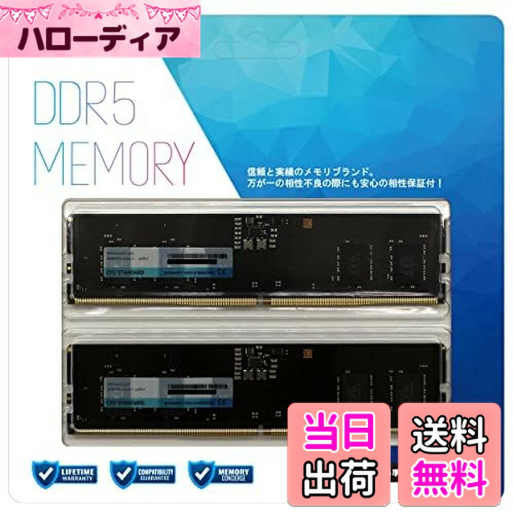 商品情報商品の説明【製品に関して】 日本で一番売れているメモリブランド*1 CFD販売からオリジナルメモリが登場! コストメリットの高いDRAMチップを厳選し、協力工場においても製造工程や工場出荷前でも厳しくチェック。 JEDECにも準拠し、品質・・サービスで安心しんしてお求め頂ける新シリーズ CFD Standardシリーズです。 【安心その1.】 ご購入前にお使いのパソコン環境で対応するメモリがわからないといったご不安に関しましては、CFDメモリコンシェルジュサービスをご活用ください! お客様の環境に合うメモリをお調べさせて頂きます。 【安心その2.】 ご購入後に発覚した相性トラブルによる動作不良・起動不良に関しては、ご購入から30日以内であれば返品いただけるCFD メモリ相性がございます。 【安心その3.】 信頼性・品質に対し厳しいチェックにも耐えた証として、製品は永久をお付け致します。 主な仕様 【製品に関して】 日本で一番売れているメモリブランド*1 CFD販売からオリジナルメモリが登場! コストメリットの高いDRAMチップを厳選し、協力工場においても製造工程や工場出荷前でも厳しくチェック。 JEDECにも準拠し、品質・・サービスで安心しんしてお求め頂ける新シリーズ CFD Standardシリーズです。 【安心その1.】 ご購入前にお使いのパソコン環境で対応するメモリがわからないといったご不安に関しましては、CFDメモリコンシェルジュサービスをご活用ください! お客様の環境に合うメモリをお調べさせて頂きます。 【安心その2.】 ご購入後に発覚した相性トラブルによる動作不良・起動不良に関しては、ご購入から30日以内であれば返品いただけるCFD メモリ相性がございます。 【安心その3.】 信頼性・品質に対し厳しいチェックにも耐えた証として、製品は永久をお付け致します。 【区分】デスクトップPC向け【規格】DDR5-5600 (PC5-33600)【容量】16GB (16GBx2枚)【特徴1】メモリ相性サービス