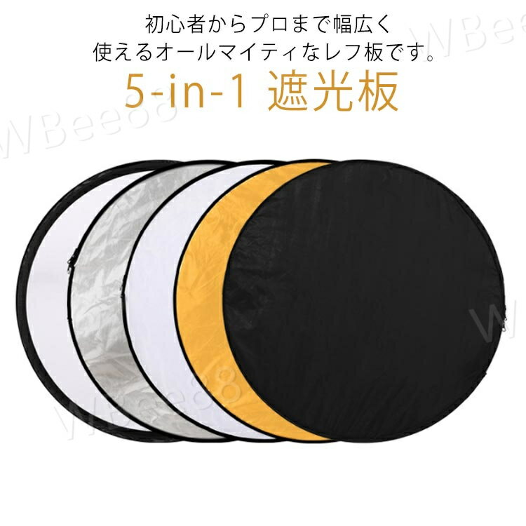 5-IN-1 撮影用 丸レフ板 60cm ハンドル付き スタジオレフ板 折りたたみ可能 (1枚で5色対応-金/銀/ 3,078 ~