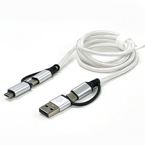 アークス X-247 4in1ケーブル 1m シルバー発売日:2020年10月12日●断線に強い断線に強いナイロンメッシュ編み込みケーブル●充電・同期ケーブルパソコンに接続すると、データ通信可能。 ●保護強化ブッシュ形状ケーブルの根元にかかる負荷を分散する保護強化ブッシュ形状を採用【仕様】対応端末:TYPE-C/microUSB搭載端末出力:2.4Aパッケージサイズ:H180×W80×D30