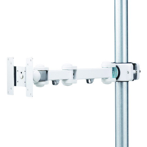 40〜60mmの丸パイプや角パイプに取り付け可能なモニターアームです。 VESA規格に準拠し、□75×75mmおよび□100×100mmの取り付け穴を有する液晶ディスプレイがマウントできます。 水平多関節タイプで、モニタの向きを任意の方向へ向けることができます。 アーム下にはケーブルクリップ付です。 ディスプレイ取り付け部は360°回転するので、水平方向に取り付けられたパイプにも取り付け可能です。 耐荷重は8kgです。 想定されるディスプレイサイズは一般的な目安を示しています。 色:ホワイト。 耐荷重(kg):8。 適合モニターサイズ:34インチまで。 奥行(mm):490〜510。 高さ(mm):115。 間口(mm):120。 可動範囲:画面回転(ローテーション)/360°左右(スウィング)/180°画面左右(パン)/180°画面上下(チルト)/180°。 付属品:ディスプレイ取付け用ネジ(M4×12)。 使用用途を守ってご使用ください。 日時指定はお受けできません。 取付けにおいてはディスプレイ重量と耐荷重を基準として選定してください。